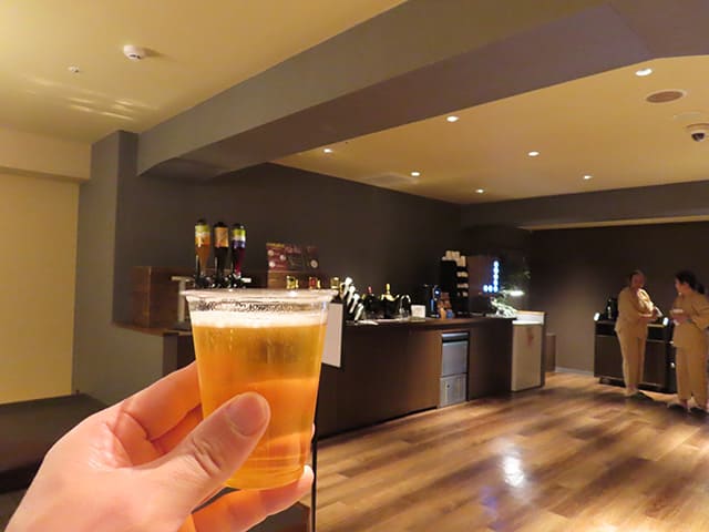 無料ラウンジにはソフトドリンク、コーヒー、アルコールドリンク、アイスキャンディーなどが用意されており、滞在中に何度でも利用できます。