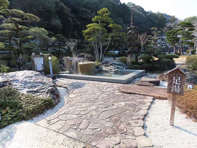 オーシャンテラスに設置された足湯以外にもホテル玄関前の日本庭園の一角に足湯があります。