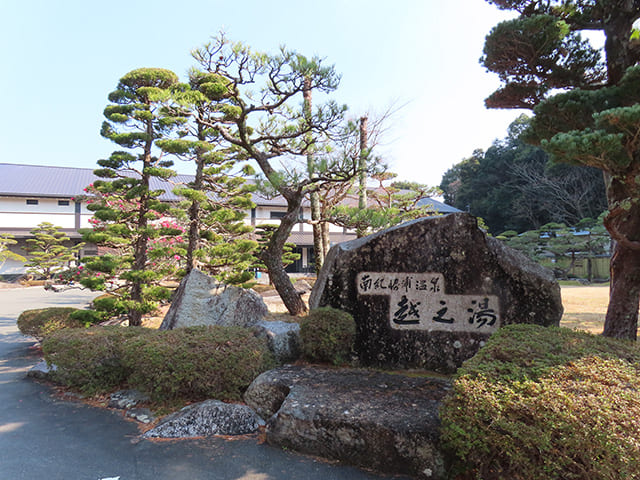 トンネルをくぐると右手に越之湯の看板が現れます。