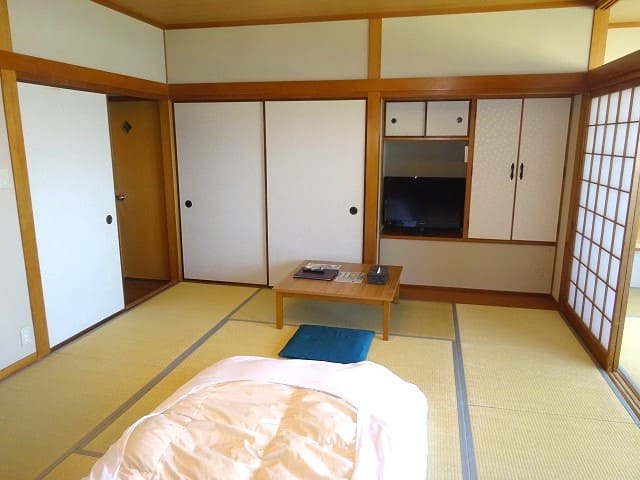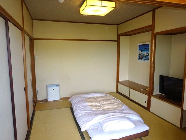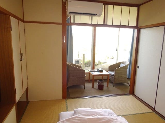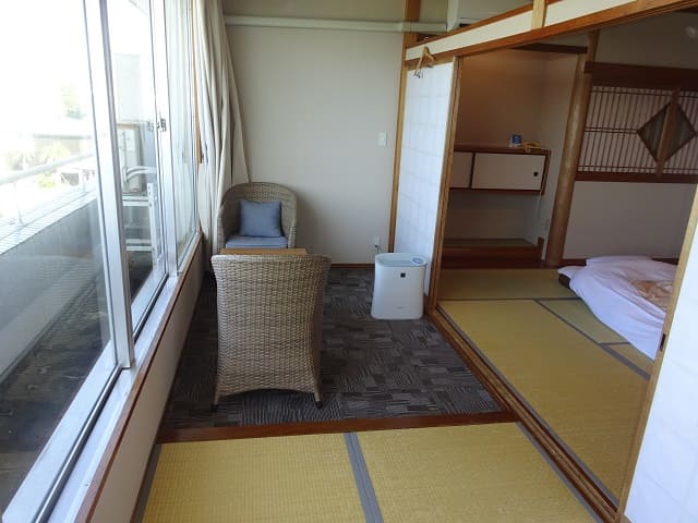 8畳程度の広さの和室に広縁が設置された客室(最大4人収容)でした。