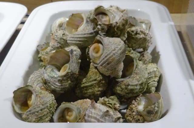 “売り”であるはずの海鮮焼きが3種類(ホタテ、サザエ炭火焼き、海老)のみ、と寂しいラインナップです。