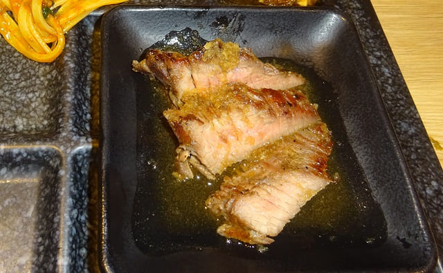 鉄板で焼き上げたステーキをアツアツの状態で提供してくれますが・・・。