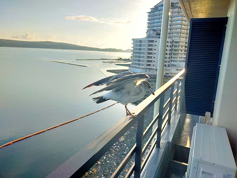 運が良ければ(?)ベランダにカモメが遊びに来てくれますよ。