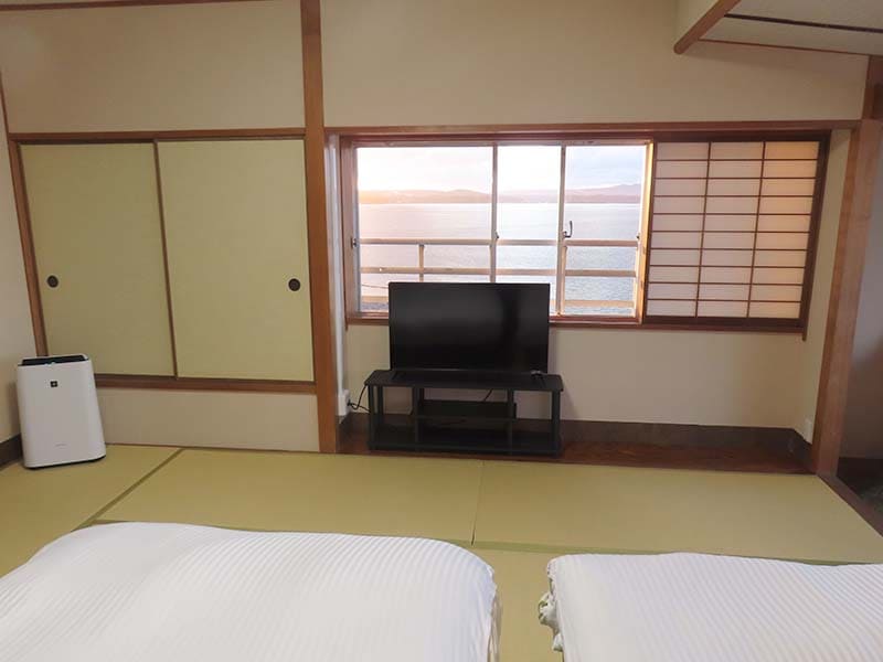 側面の障子を開けると海が見れます。